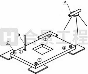 8.8.3 尾棒夾具垂直度調整(圖8.8.3)應按下列規定進行: