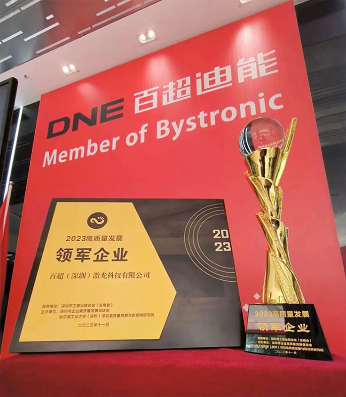 本屆評選活動,經(jīng)專家實地調(diào)研、研究機構(gòu)綜合評定,最終20家企業(yè)成功獲評“高質(zhì)量發(fā)展領(lǐng)軍企業(yè)”。百超(深圳)激光科技有限公司被授予“高質(zhì)量發(fā)展領(lǐng)軍企業(yè)”稱號,百超(深圳)副CEO顏春英上臺領(lǐng)獎。